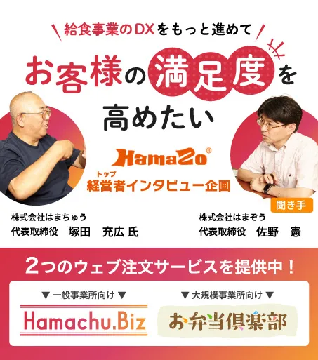 ウェブ注文システムは 2つある。個々人がスマホで気軽に注文できる「お弁当倶楽部」と、担当者の方がWEB上でまとめて注文できるシステム「Hamachu.Biz (はまちゅうドットビズ)」だ。